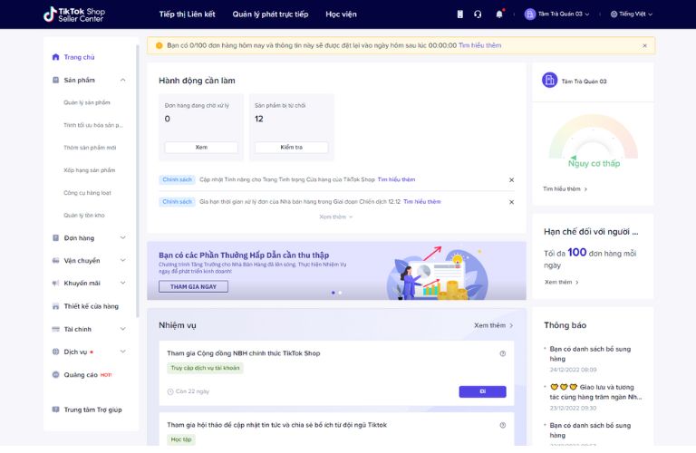 Tiktok Shop giới hạn 100 đơn hàng/ngày cho những shop nào? Khi nào đủ điều kiện để mở giới hạn đơn hàng TikTok Shop? Cùng Lee Dzung tìm hiểu thông qua bài viết dưới đây. Giới hạn đơn hàng trên TikTok Shop là gì? Giới hạn...